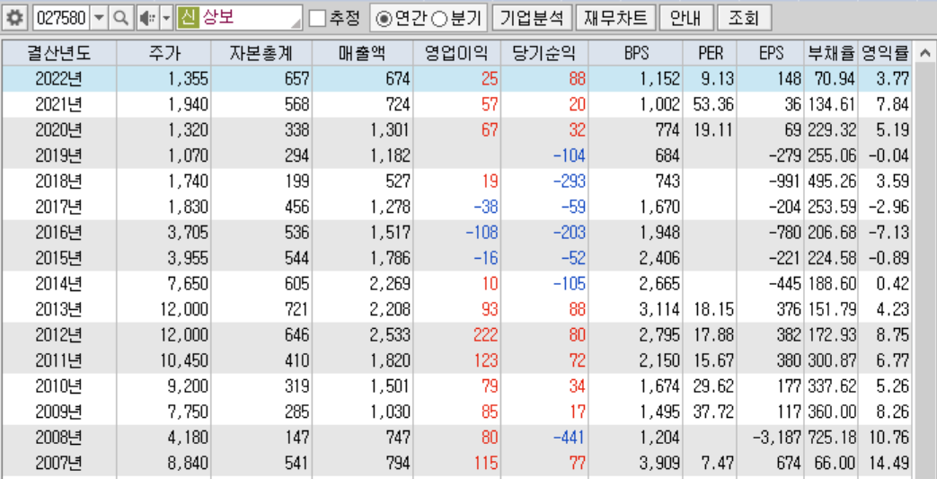 ◐ 시총 : 1096 억 ◐ PER : 12 ◐ PBR : 1.57 ◐ 부채율 : 71 % ◐ 이익잉여금 : 50 억