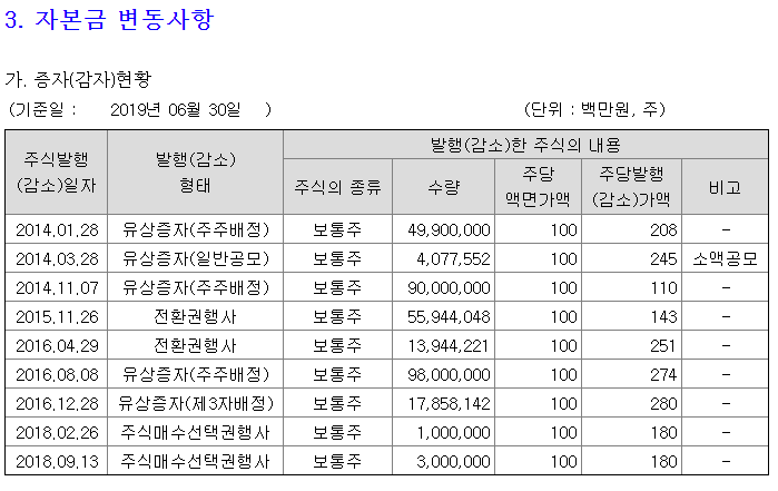 기본적인 분석을 해 봐도 3년 전 자본금도 감소, 부채율도 3년전 대비 증가, 시총도 1,947억 원(2016년 당시)에서 1,079억 원(2019.9.30 기준))으로 떨어졌습니다.