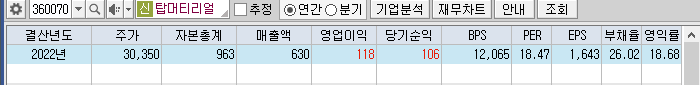 ◐ 시총 : 5158억 ◐ PER : 39 ◐ PBR : 5 ◐ 부채율 : 26 %◐ 배당 : - ◐ 이익잉여금 : 48 억