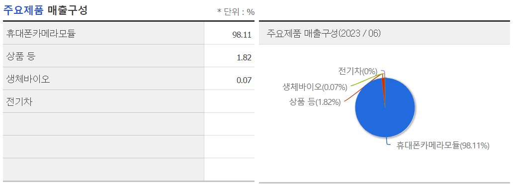 - 최근 흑자전환/ 전기차, 드론 관련주 / 휴대폰용 카메라 모듈
