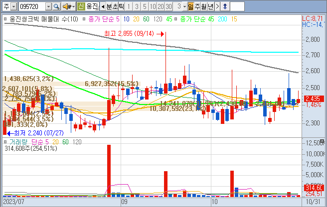 ‘적자 빨간불’ 웅진씽크빅, 주가 장중 7%대 급락…3%하락 마감 [투자360]